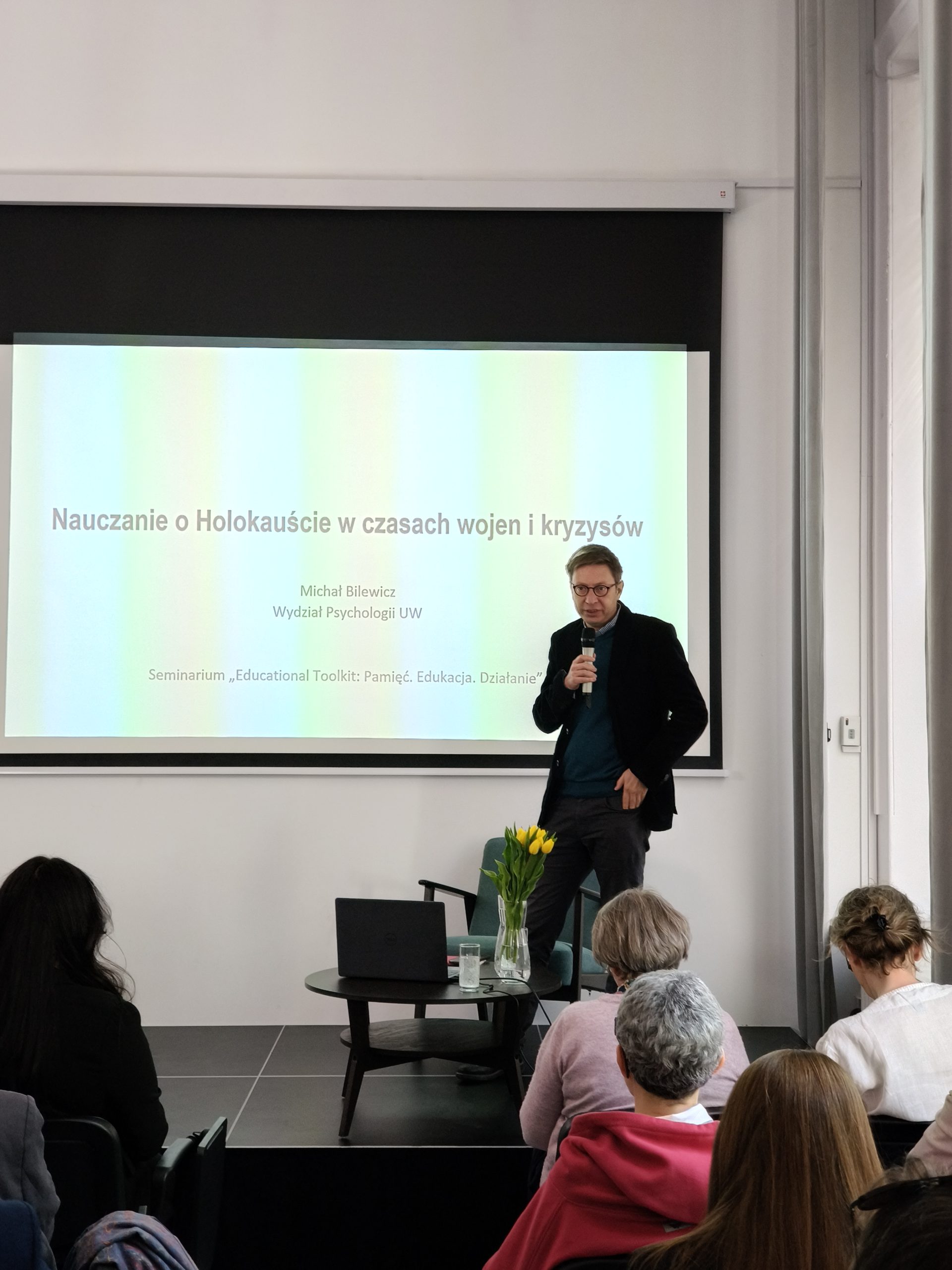 Uczestnicy wysłuchali wykładu prof. Michała Bilewicza pt. Nauczanie o Holokauście w czasach wojen i kryzysów. Prelegent zwrócił uwagę na znaczenie odnoszenia się do lokalnej historii oraz uniwersalnych mechanizmach psychospołecznych, aby osiągnąć cele edukacyjne, np. kształtowanie postawy otwartości czy empatii. W drugiej części spotkania odbyły się dyskusje stolikowe na temat m.in. pamięci lokalnej, edukacji obywatelskiej i wykorzystania multimedialnych narzędzi w szkole.