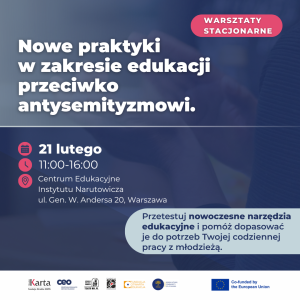 Warsztaty stacjonarne „Nowe praktyki w zakresie edukacji przeciwko antysemityzmowi”